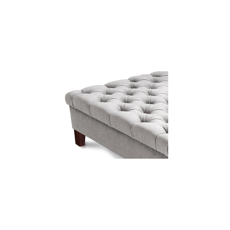 An elegant deep buttoned square stool with top and medium depth base section detail. Enjoy using as a footstool, coffee table, games table or occasional seat in any setting.