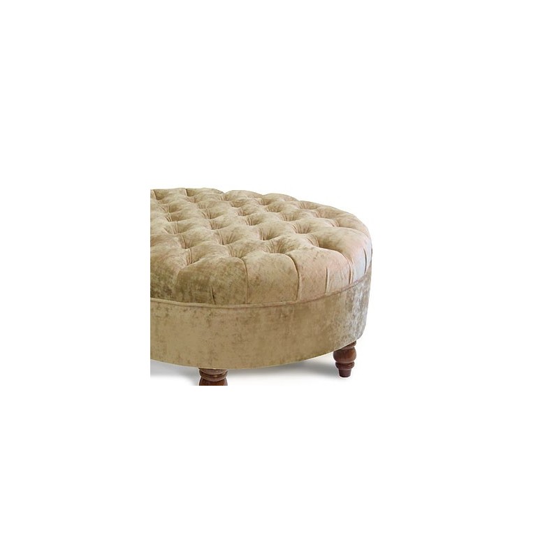 An elegant deep buttoned oval stool with a beautiful piping detail. Enjoy using as a footstool, oval coffee table, or occasional seat.
