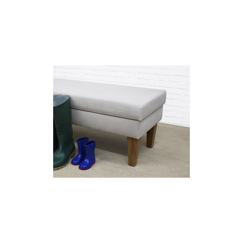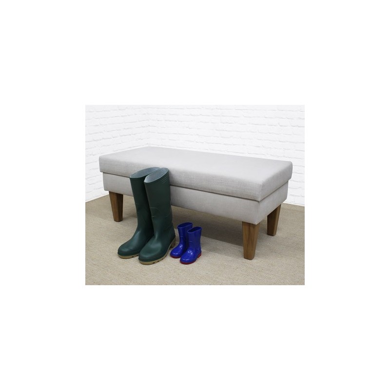 A classic bench stool with padded seat and base section. Use taller legs for a hallway seating bench or shorter legs for a footstool or coffee table.