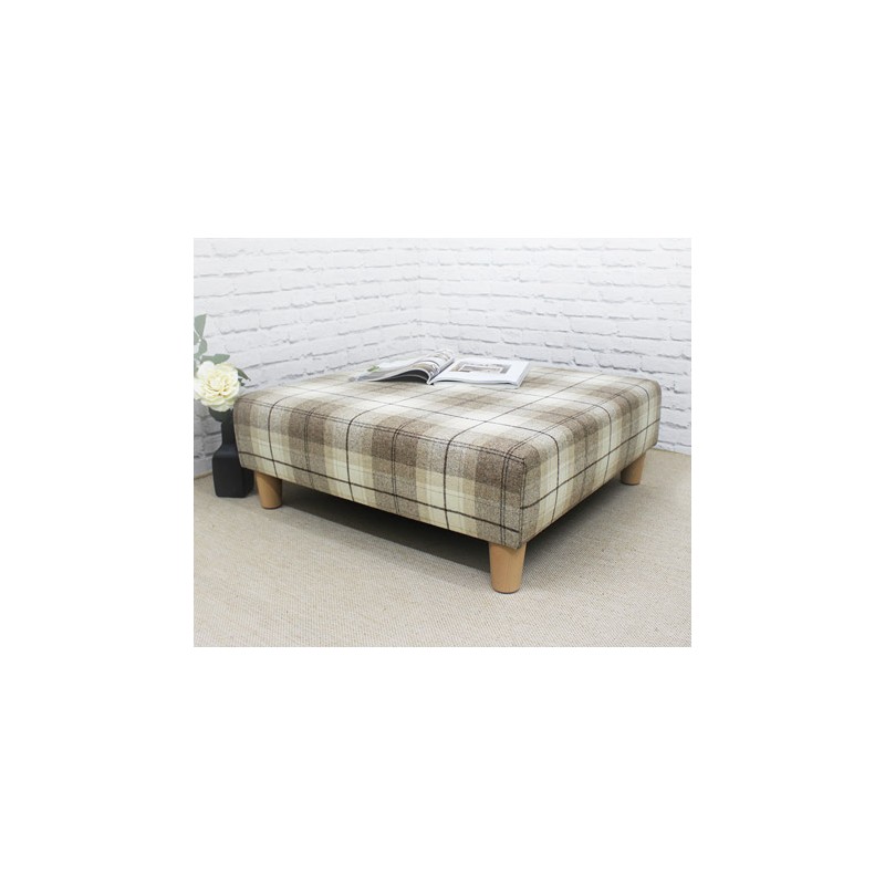 A square, stylish stool, which is easily customised in your own choice of fabric and legs. Enjoy using as a footstool, coffee table, games table or occasional seat.