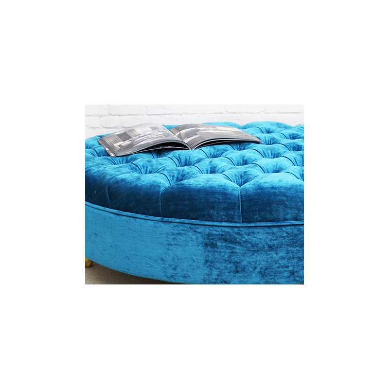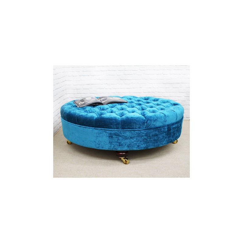 An elegant deep buttoned oval stool with a beautiful piping detail. Enjoy using as a footstool, oval coffee table, or occasional seat.