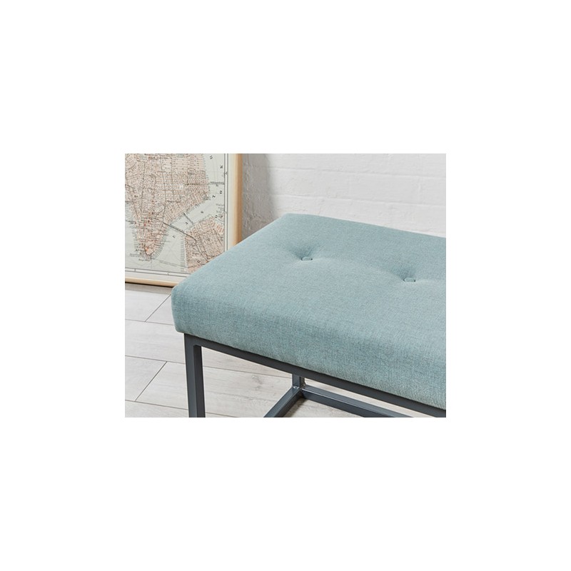 The metal bench footstool with shallow buttons. Both practical and stylish, it can be used as a footstool, coffee table and strong enough for seating. One available as shown in Cambay EasyClean fabric - sample available on request.