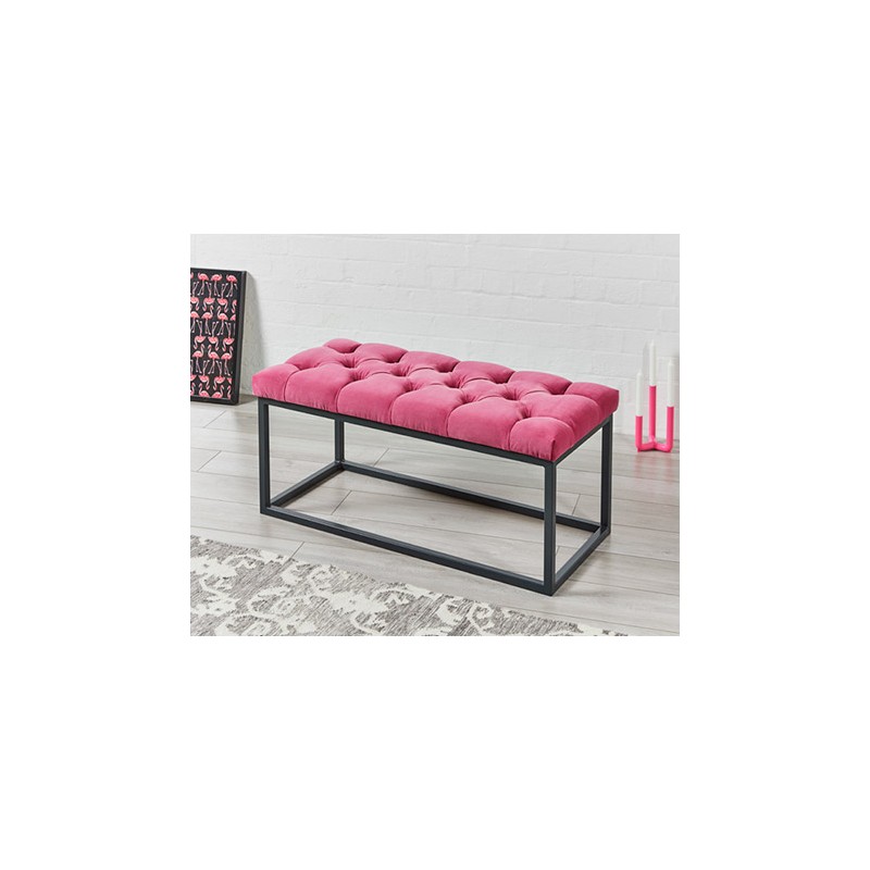 The metal bench footstool with deep buttoned top. Both practical and stylish, it can be used as a footstool, coffee table and strong enough for seating. One available as shown.