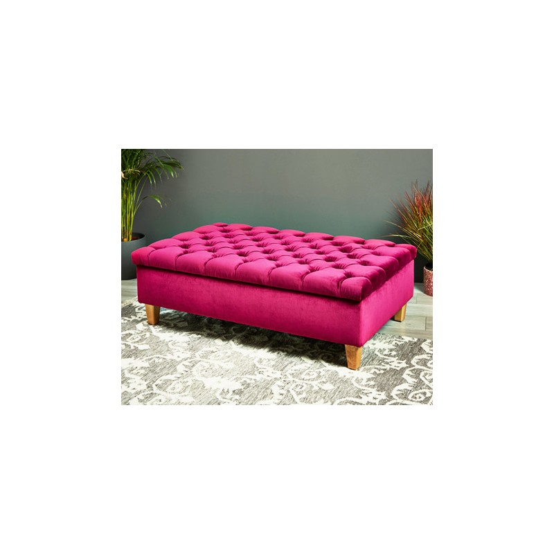 An elegant yet practical deep buttoned rectangular storage ottoman. Enjoy as a coffee table, occasional seat and includes excellent storage space.