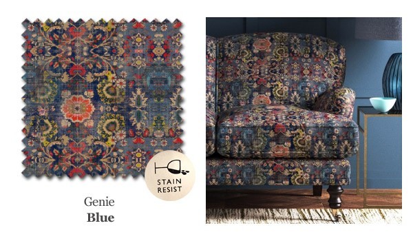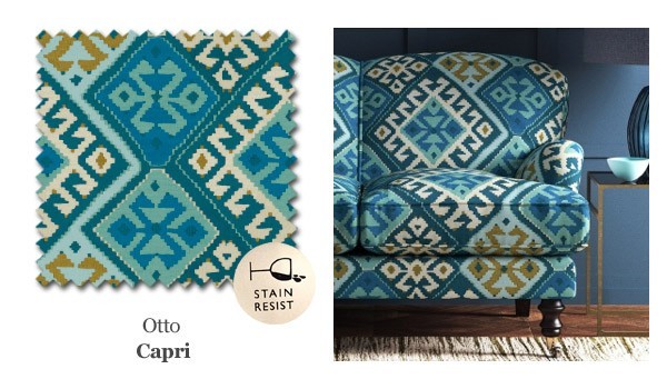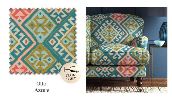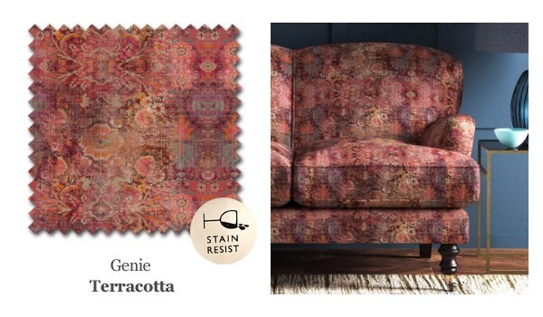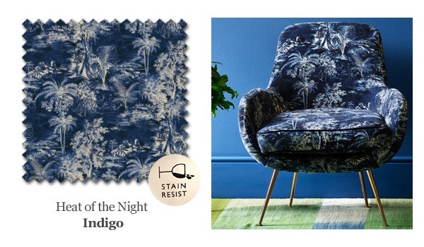 Omega Prints - An amazing and eclectic range of bold prints with 50 colourways over 16 designs. Printed on the soft Omega Velvet which is stain resistant and 100,000 Martindale Rub Test.
