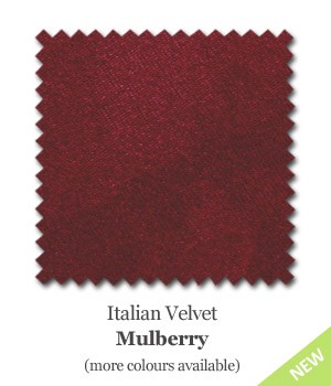 Italian Velvet - A collection of richly coloured Italian velvets with a stain repellent finish and surprisingly hard wearing. Please test your free samples and pour liquids on them. An elegant fabric with a soft, matt finish. These fabrics are part of the Linwood Omega range and there are more colours available.