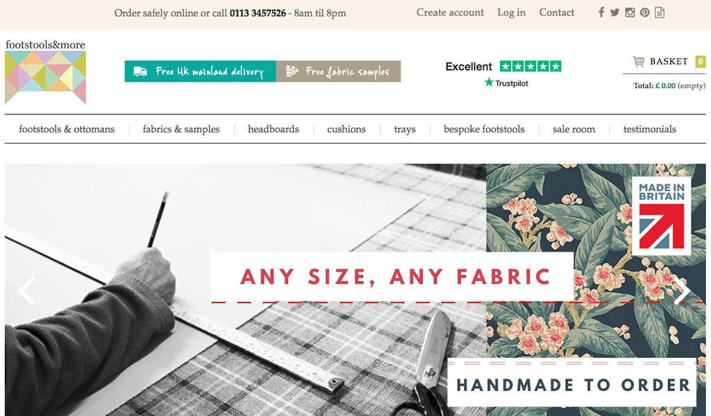 Check out our new website for new products, fabrics, legs. We have been working on our new website for a while and have taken time to ensure we are offering the largest collection of quality footstools and ottomans.