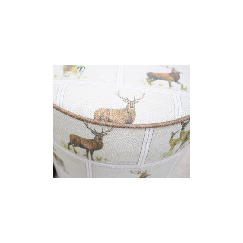 A tall drum stool with beautiful piping detail on top. Both practical and stylish, it can be used as a footstool and strong enough for an occasional seat.