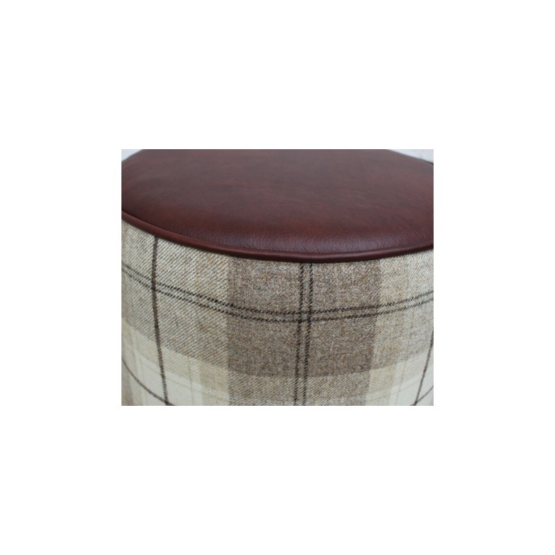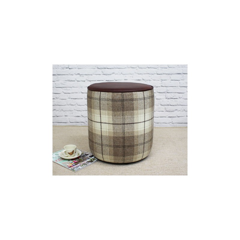 A tall drum stool with beautiful piping detail on top. Both practical and stylish, it can be used as a footstool and strong enough for an occasional seat.