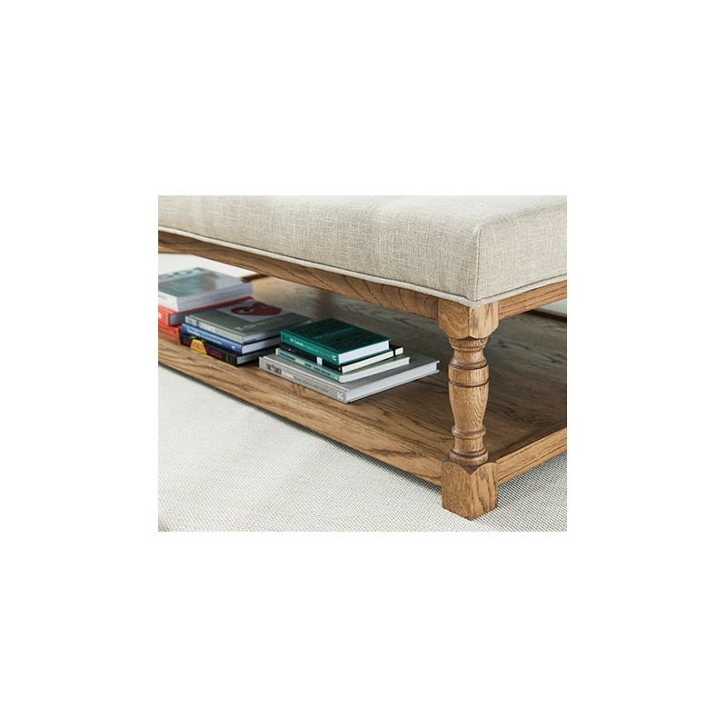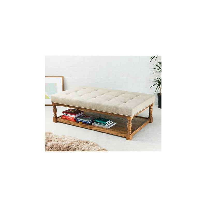 Hamilton Shallow Buttoned : Rectangular Oak Framed Coffee Table Stool