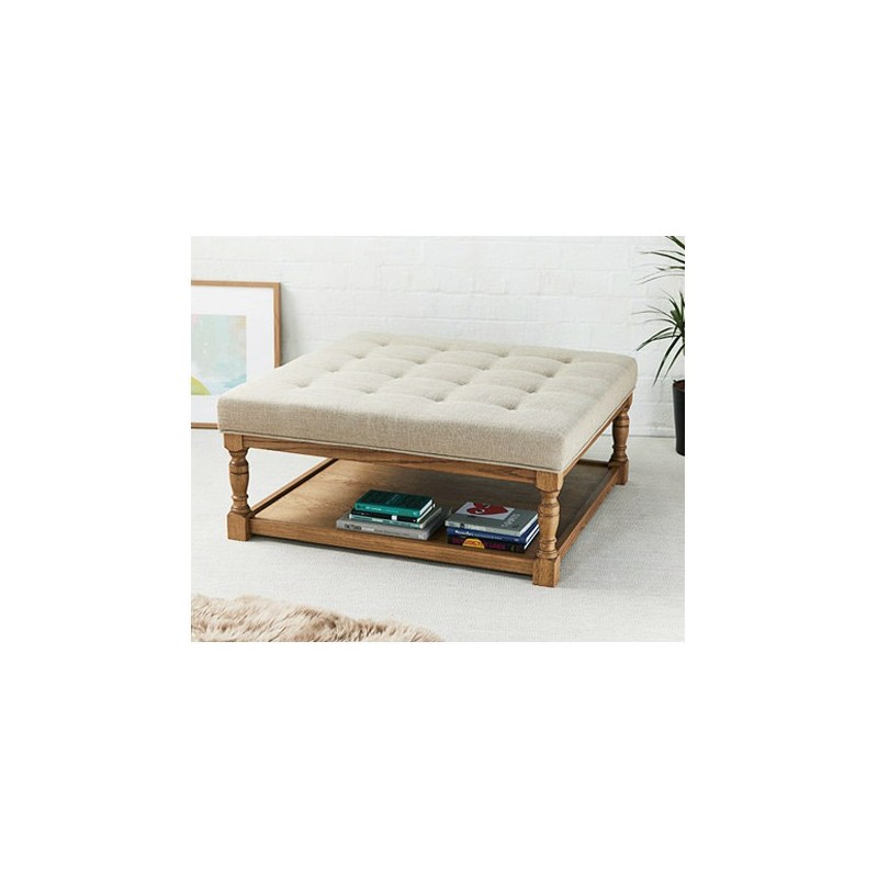 Burlington Shallow Buttoned : Square Oak Framed Coffee Table Stool