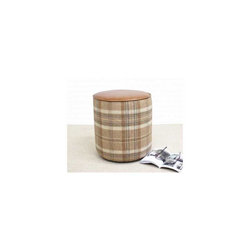 A tall drum stool with beautiful piping detail on top. Both practical and stylish, it can be used as a footstool and strong enough for an occasional seat.